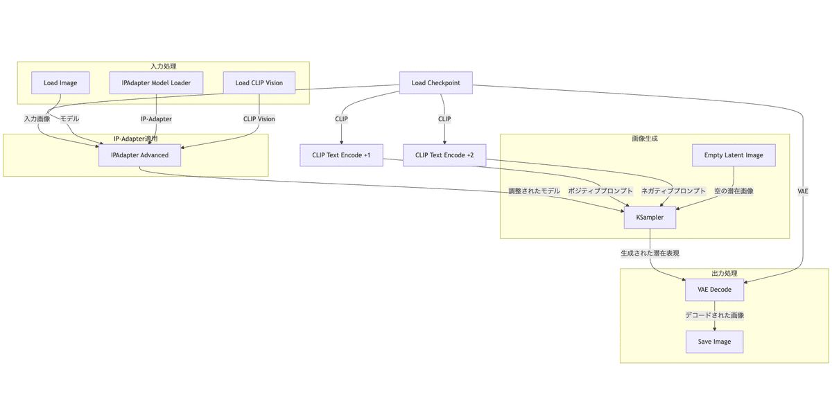 以下に、このワークフローの主要な部分とその機能を図示し、詳細に説明します。