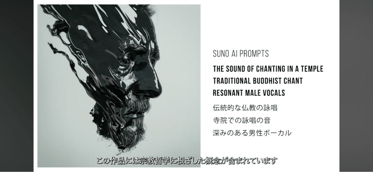 「AI によって生成された素材を動画編集によって最終的な作品に仕上げています。この過程では、AI が生み出す無限のバリエーションの中から人間が良いと思って特定の要素を選び取り、編集することで、人間の恣意性が込められています。具体的には AI が生成した、不明瞭な文字や音声の中からどの部分をどのように映像に結びつけるかを編集者が決定し、視覚的・聴覚的に再構成しています。これにより、AI と人間の共同作業によって新しい日本語の可能性を探求するという作品のコンセプトをさらに深めています」