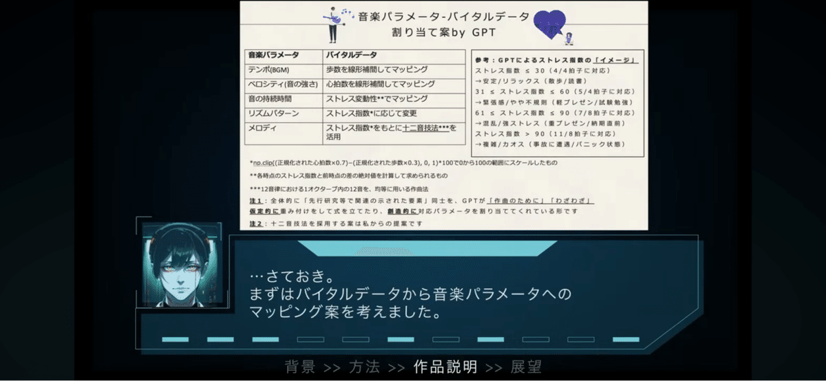 バイタルデータをパラメータとして AIと協働で音楽を作るという発想が面白いですね。とても約3日で制作されたとは思えないクオリティです。制作過程の焦りや不安感はとても感じられますが(笑)。まとめ
