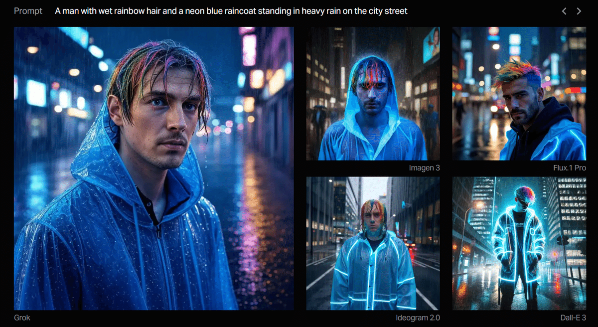 [Grok、Imagen 3、Flux.1 Pro、Ideogram 2.0、DALL-E 3 の生成結果比較]