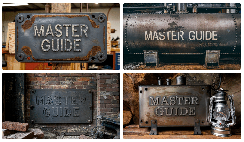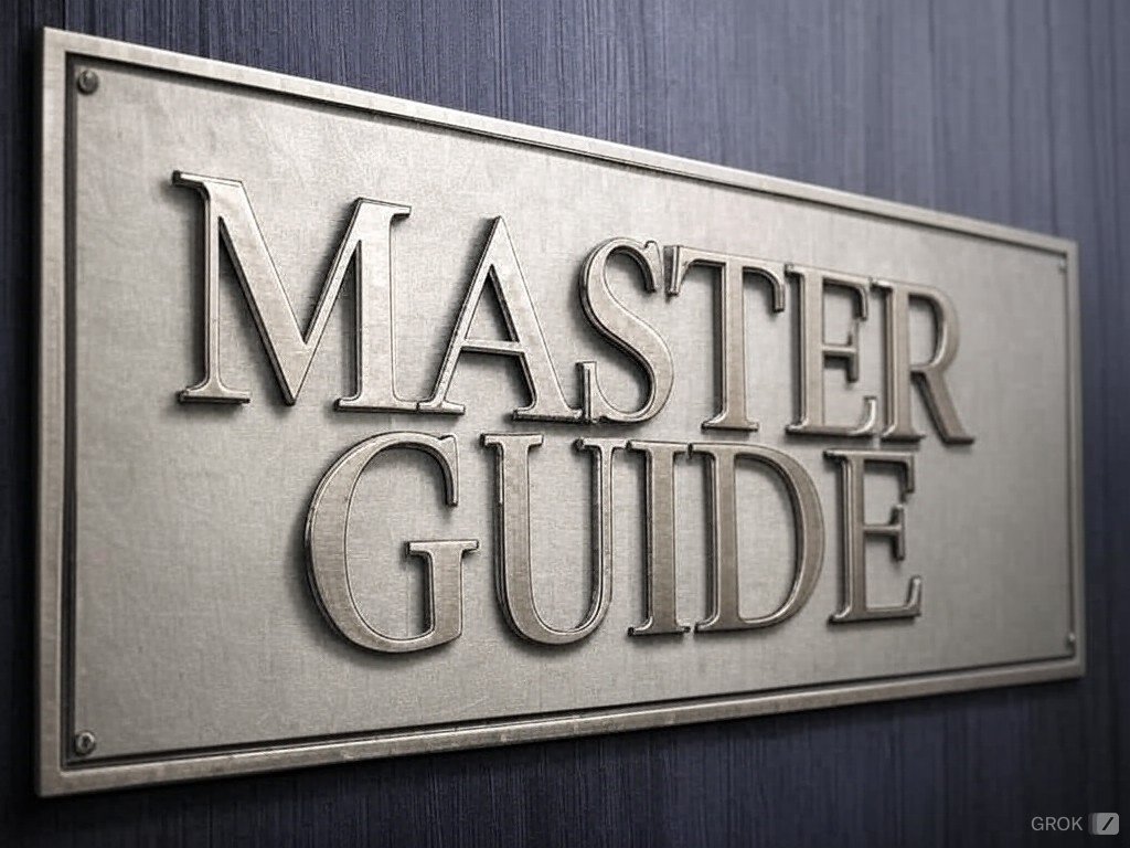 metallic boiler plate of "MASTER GUIDE" (Ideogram 2.0)