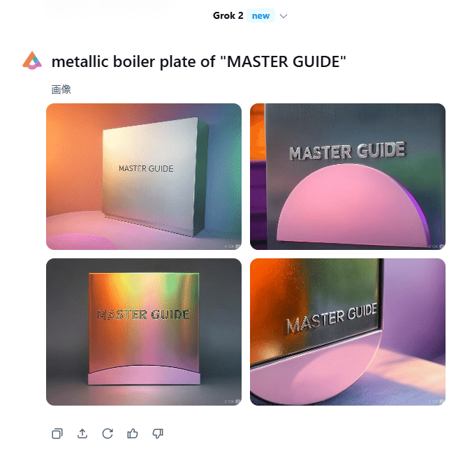 たしかに日本語で一発でこのクオリティが生成できるのは素晴らしいですね。右下に「GROK」のロゴが入ります。