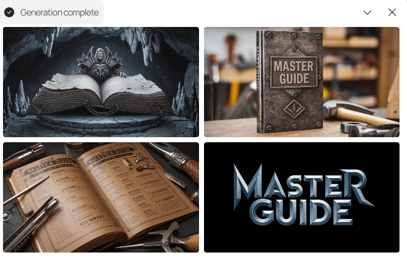 日本語プロンプト:メタル調の画像がほしい「MASTER GUIDE」