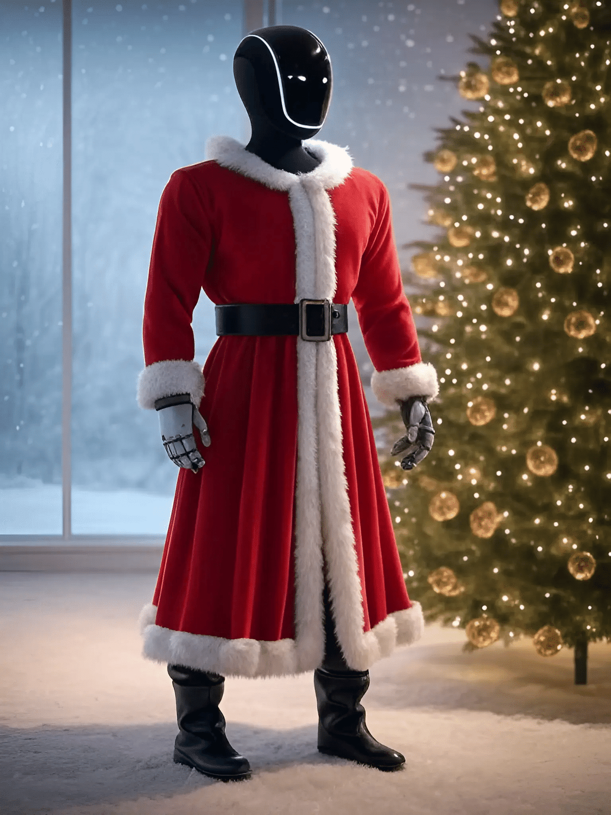 Optimus wearing a Xmas costume in a Xmas scene