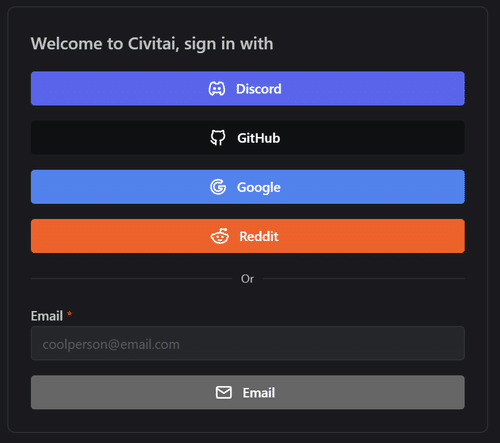 2.Civitaiにログインまたは新規アカウントを作成します。