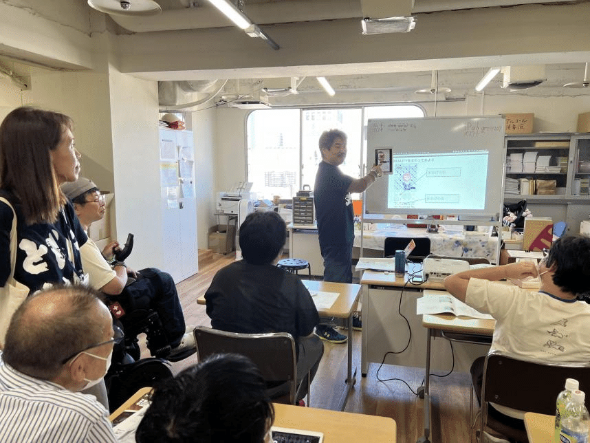 2024年9月13日、20日、27日。認定NPO法人横浜移動サービス協議会 就労継続支援B型事業所「IKIIKIカンパニー」(横浜市中区)にて実施したワークショップで、GenUはiPadのブラウザから他のREALITYやアイビスペイントといったアプリと並んで背景画像の生成に使われました。