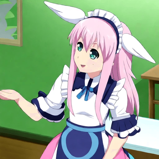 a cute anime girl with massive fennec ears and a big fluffy tail wearing a maid outfit turning around