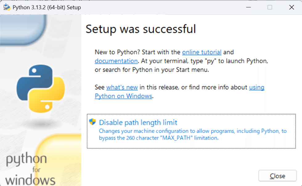 これで、Pythonのインストールは完了です。