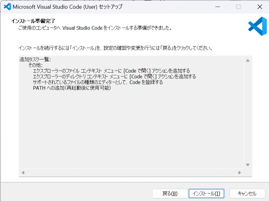WindowsのVSCodeインストール: