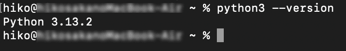 Mac OSの場合は、「python3 --version」と入力してバージョンが表示されれば問題ありません。