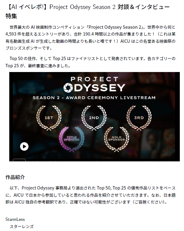 世界最大のAI映画制作コンペティション「Project Odyssey Season 2」で入選・受賞した2名の特別インタビュー&対談をお届け!