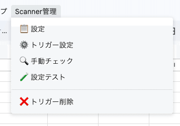 ・ユーザーが操作する関数はスプレッドシートのメニュー「Scanner管理」から利用可能にします。