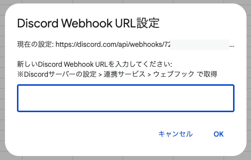 値: 通知を送りたいDiscordチャンネルのWebhook URL