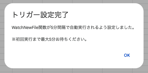 ⚙️ トリガー設定: WatchNewFile()の自動実行を5分間隔で設定