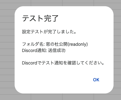 以上で全ての設定は完了です。以降、指定したフォルダに新しいPDFが保存されると、設定した間隔でスクリプトが自動実行され、スプレッドシートへの記録とDiscordへの通知が行われます。