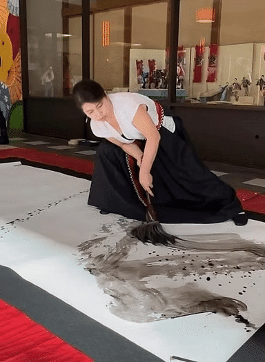 大筆の書家Goyoさん 今回は現地在住の大筆の書家「Goyo」とのコラボレーションです。 来場者はAIと大筆パフォーマンスのコラボレーションに驚嘆と共感を覚えていました。