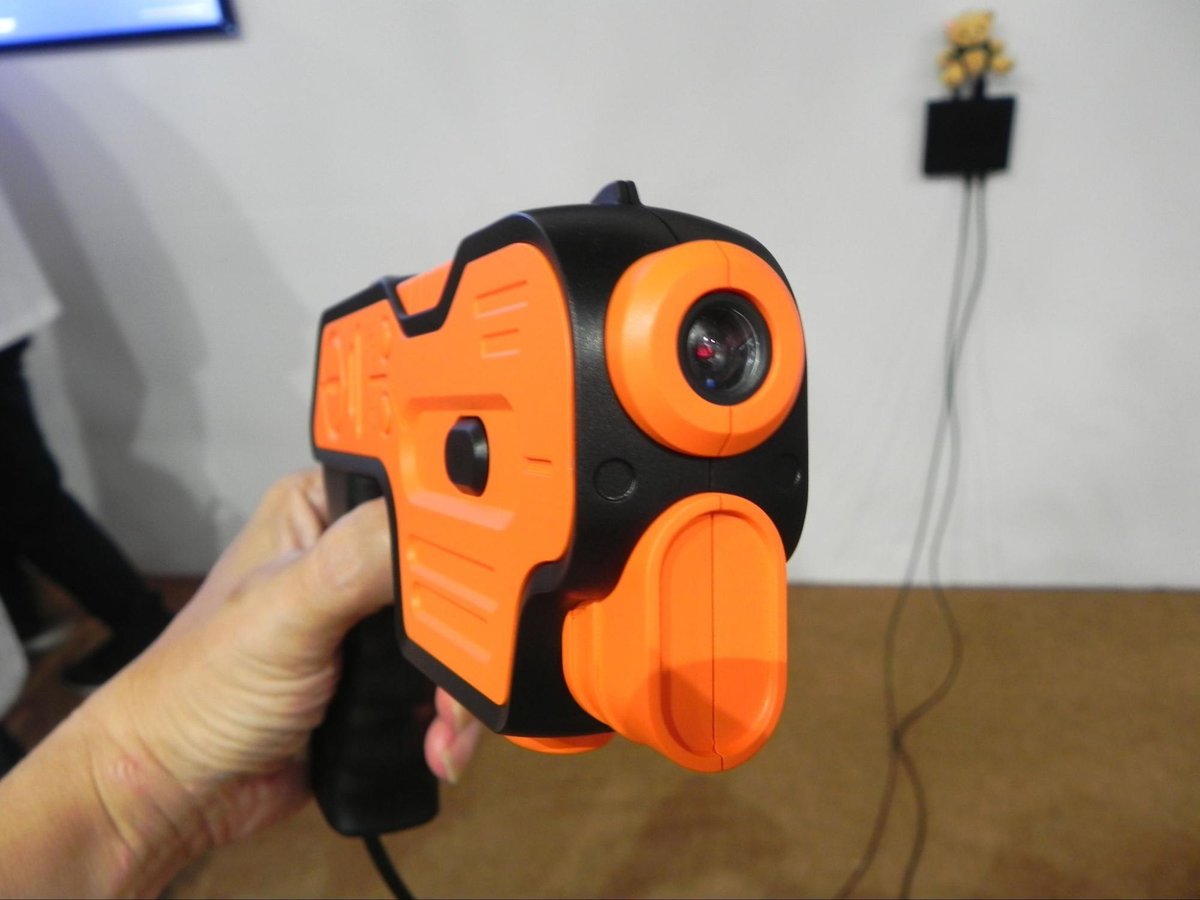 開発の方にお伺いしたところ、「ガンシューティングゲームはブラウン管の時代に人気のあるジャンルでしたが、液晶の時代になってあまり普及しなくなりました。そこで最新技術を使って気軽に遊べるプラグ&プレイの形で提供すれば愉しんでもらえるのではないかと考えて開発しました。」とのことでした。