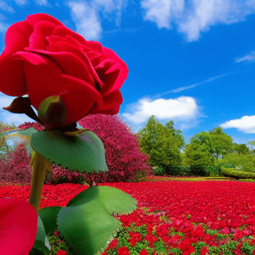 例えば、 "A beautiful garden with red roses and white lilies blooming under a clear blue sky " というプロンプトがあるとします。
