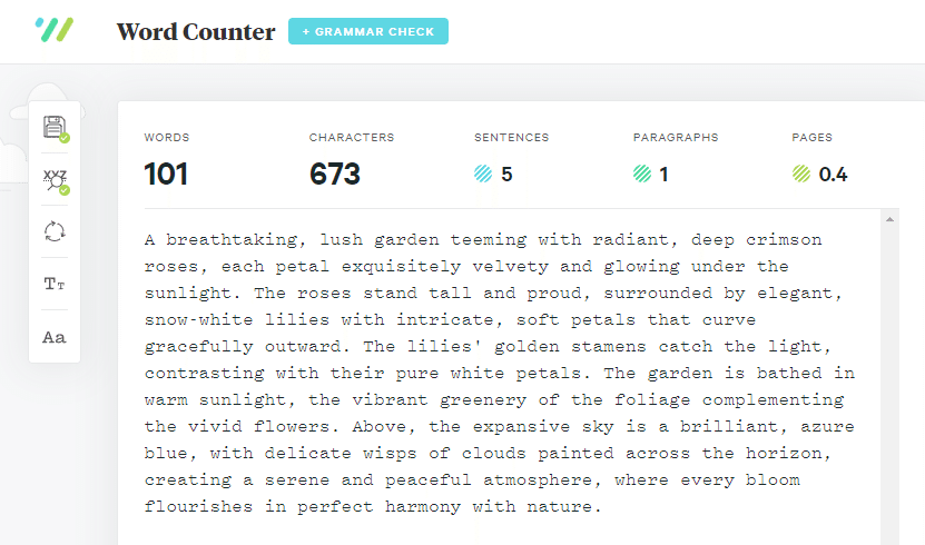 ここまで来ると美しさも素晴らしいのですが、ワードカウントすると101ワードありました。