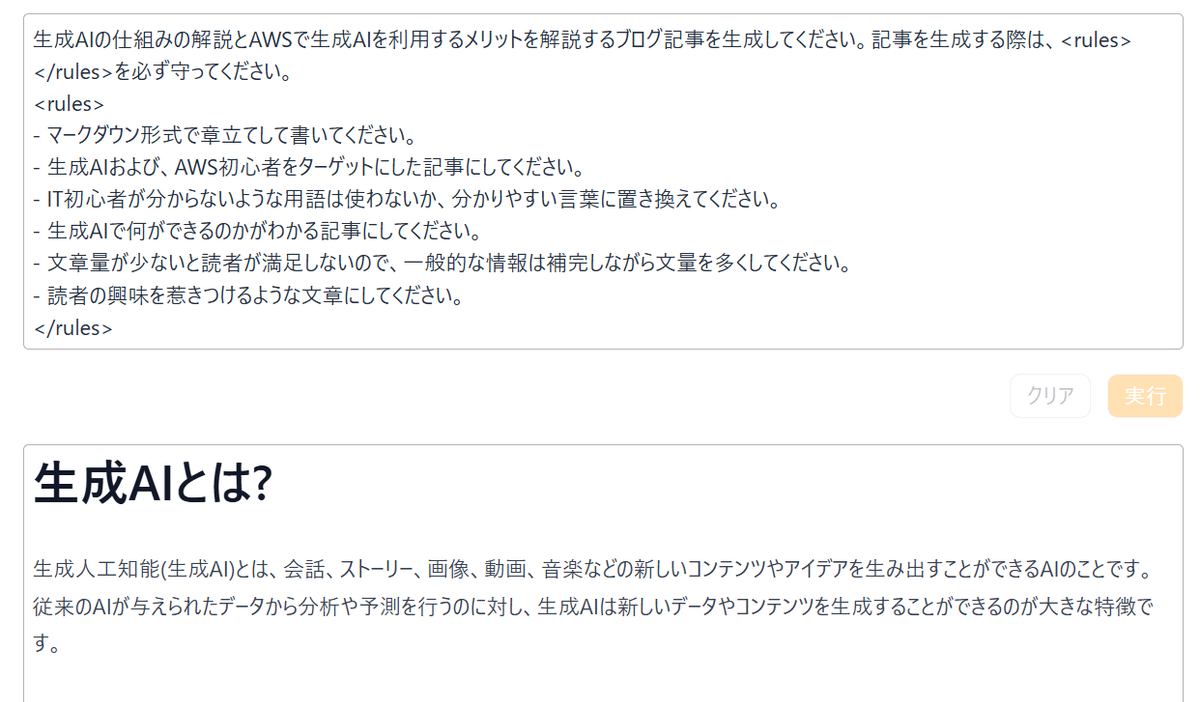 抽出した内容とブログを書く際のルールをもとに記事を作成してくれます
