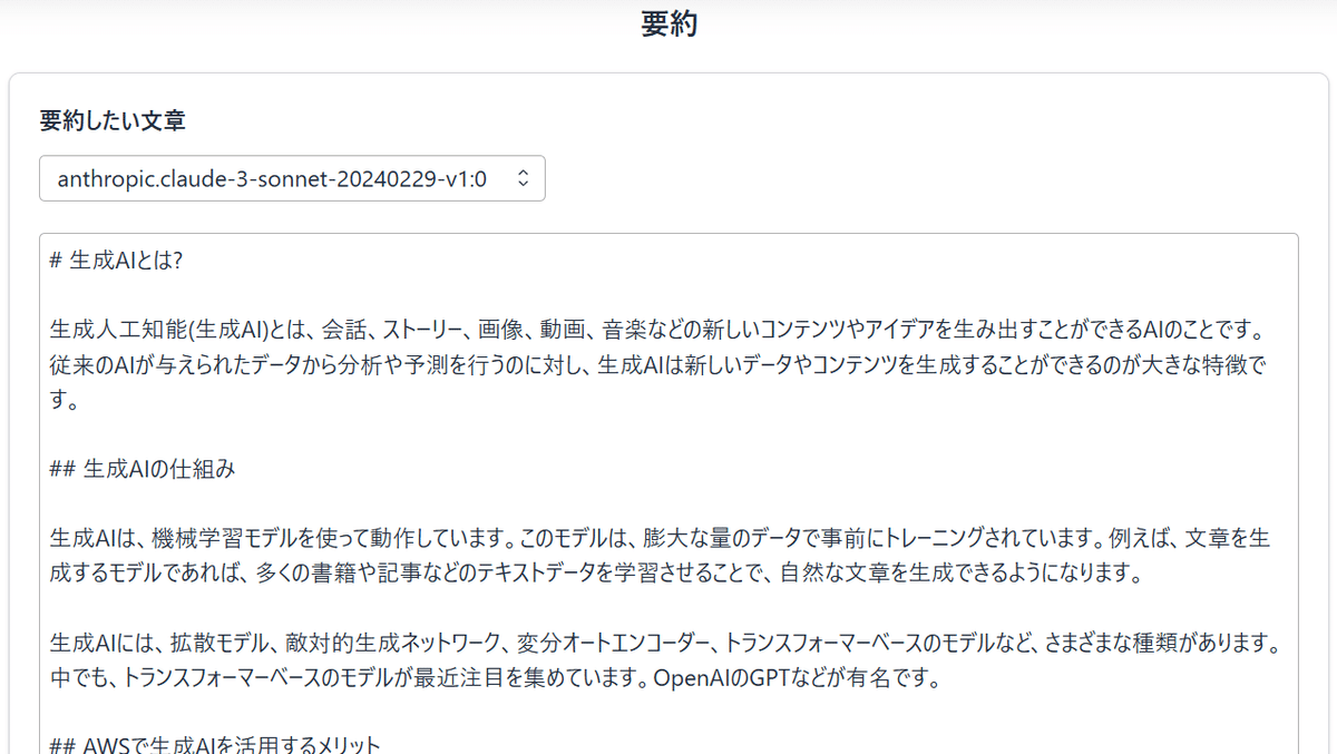 さらに生成したブログ記事の本文を要約します